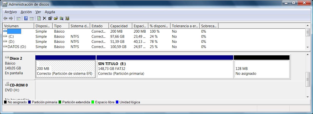 Una vez completados todos los pasos, ya podemos acceder de nuevo al Administrador de discos para particionar y formatear el disco a nuestras necesidades.