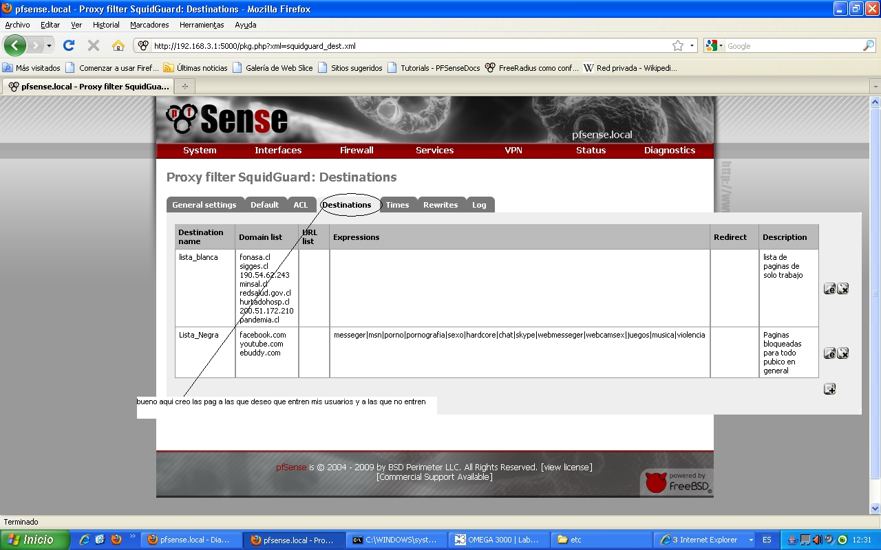 cree dos (internet + lista negra+ lista blanca) e